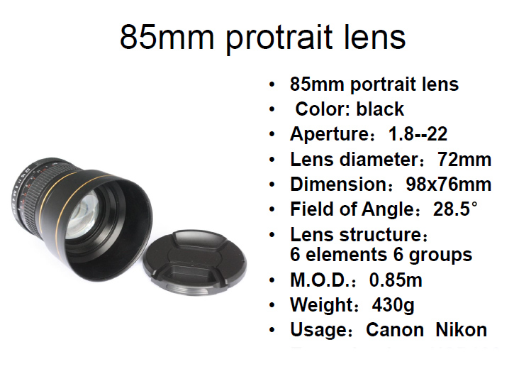 85 mm F1,8 Canon Nikon-Objektivspezifikation