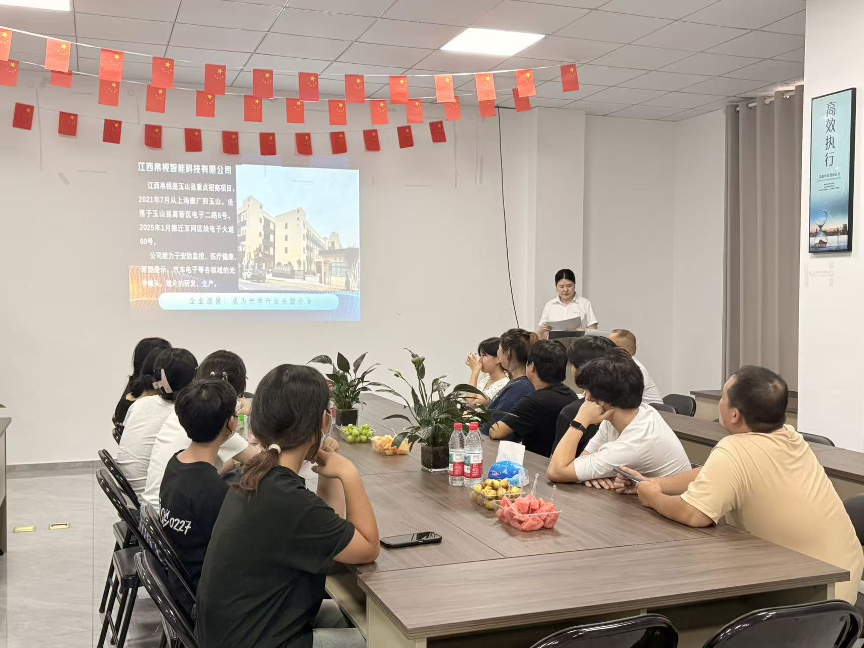 Der Werdegang des Unternehmens – von der Verlagerung von Shanghai nach Yushan bis hin zu seinen aktuellen, fokussierten Weiterentwicklungen im optischen Bereich – wurde geteilt und verdeutlichte Silks anhaltendes Engagement für Hardware-Forschung und -Entwicklung sowie Innovationen in Bereichen wie Sicherheitsüberwachung, medizinische Gesundheit und Automobilelektronik. Der an der Wand angebrachte Slogan „Efficient Execution“ spiegelt treffend den Einsatzgeist des Teams wider. Dieses Treffen diente nicht nur der Einführung in die Unternehmenskultur, sondern auch der klaren Kommunikation der Unternehmensvision: das wertvollste Unternehmen der optischen Industrie zu werden.